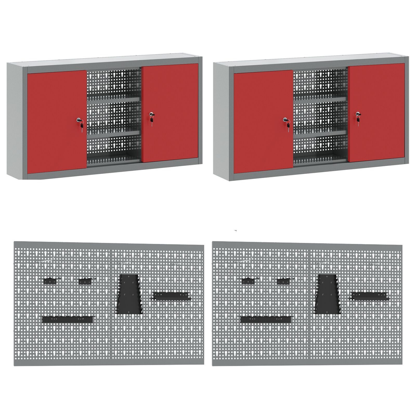 vidaXL vidaXL 10-tlg. Werkstattschrank-Set mit Stecktafel Rot MDF Metall