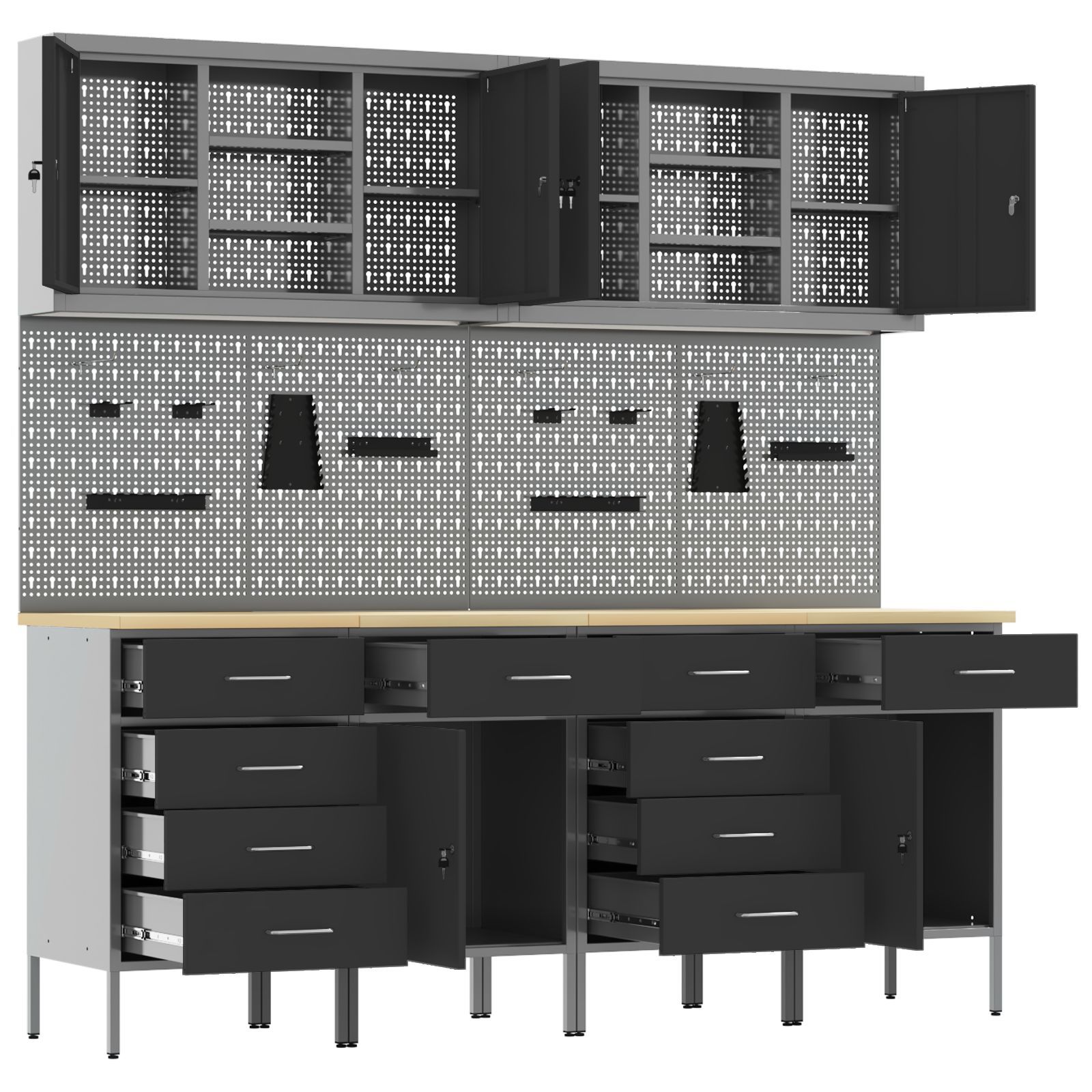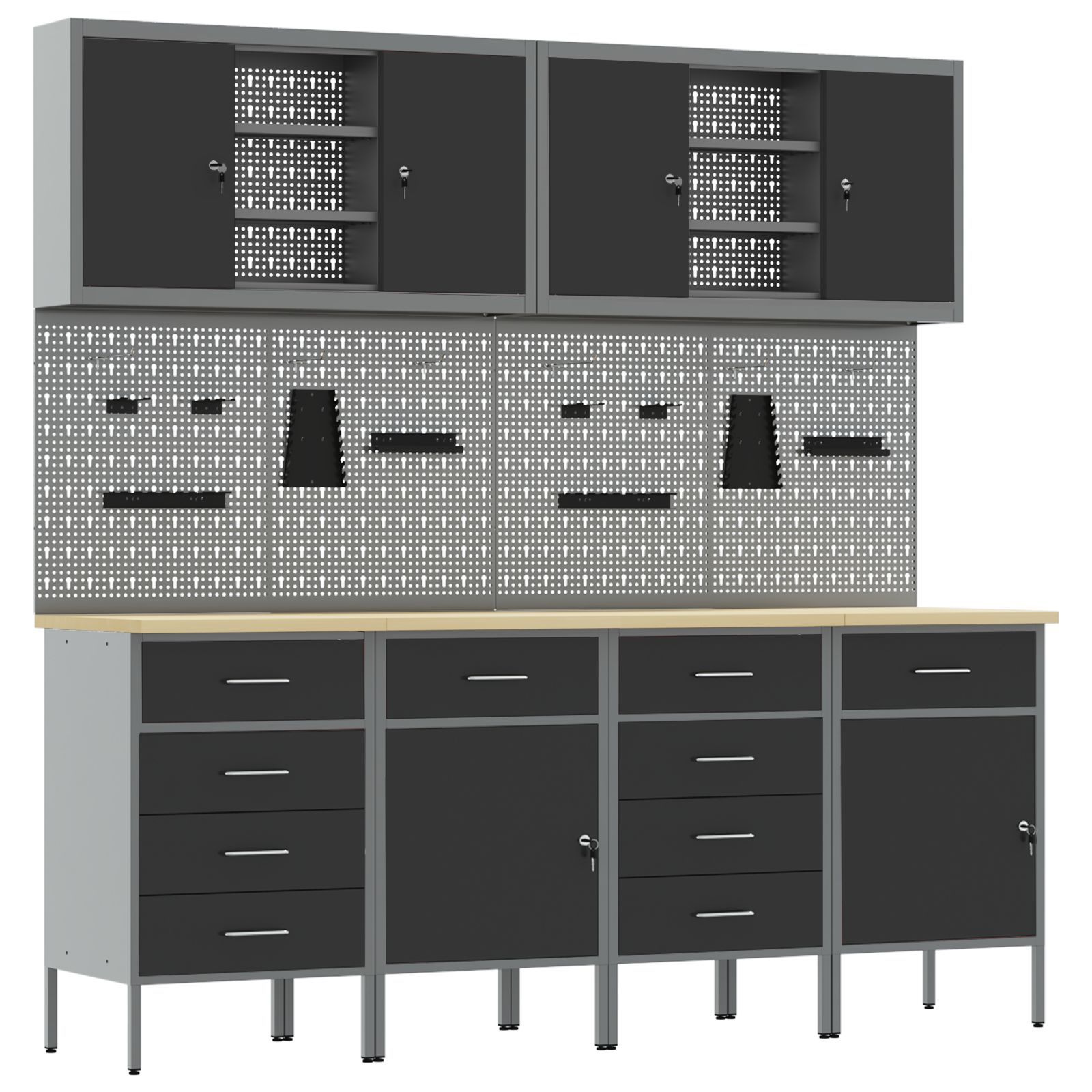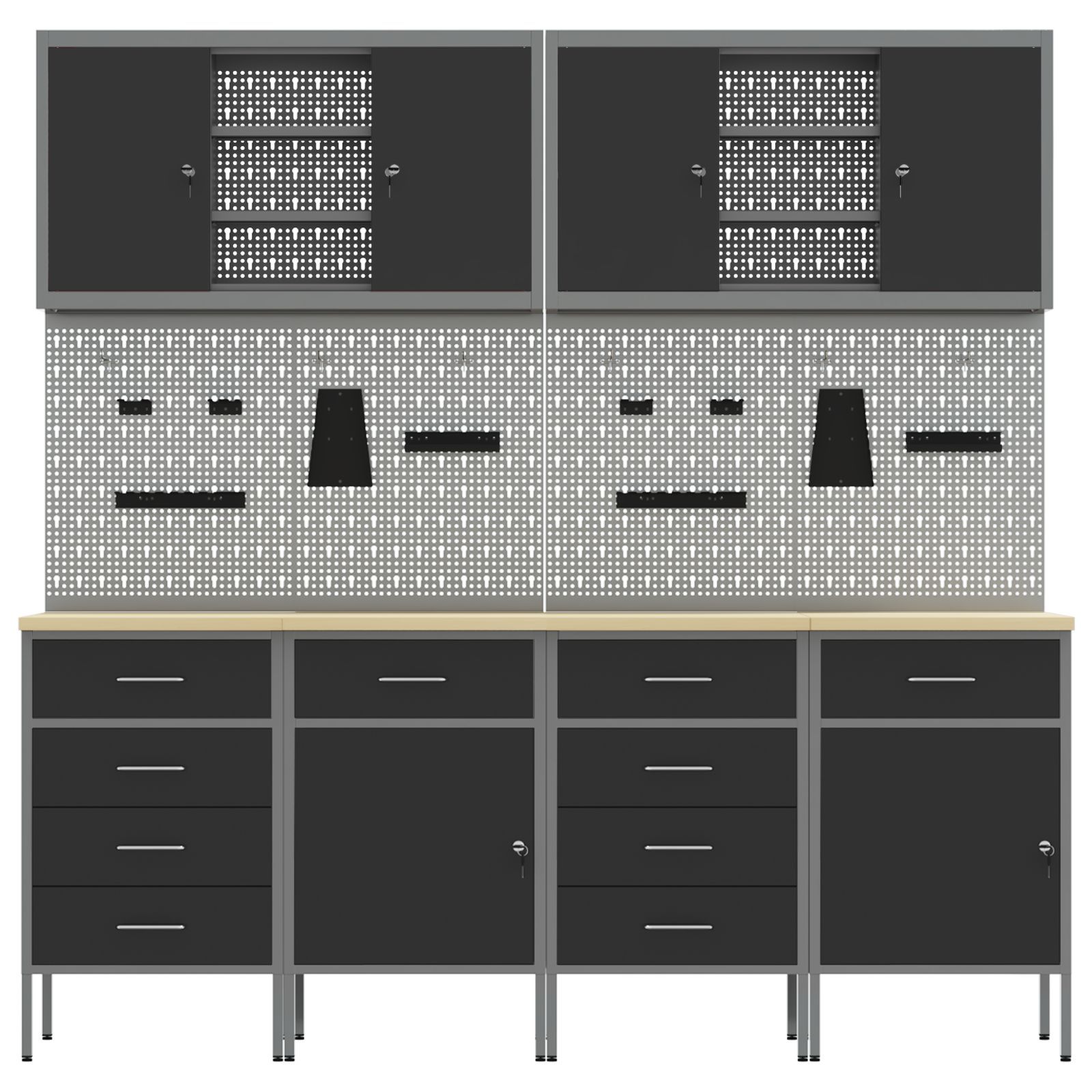 vidaXL vidaXL 10-tlg. Werkstattschrank-Set mit Stecktafel Schwarz MDF Metall