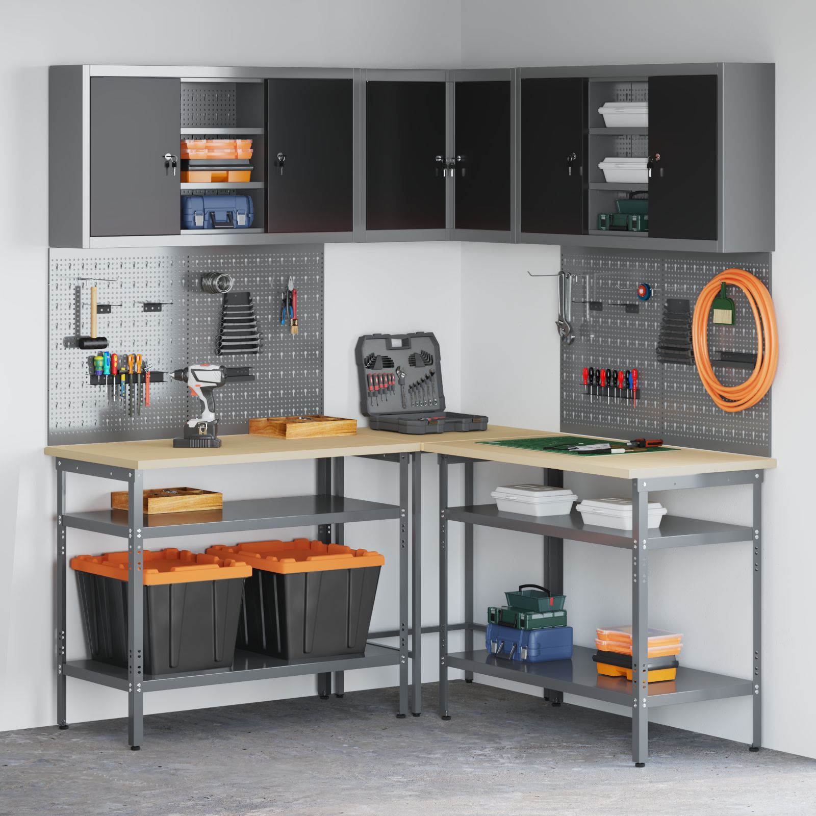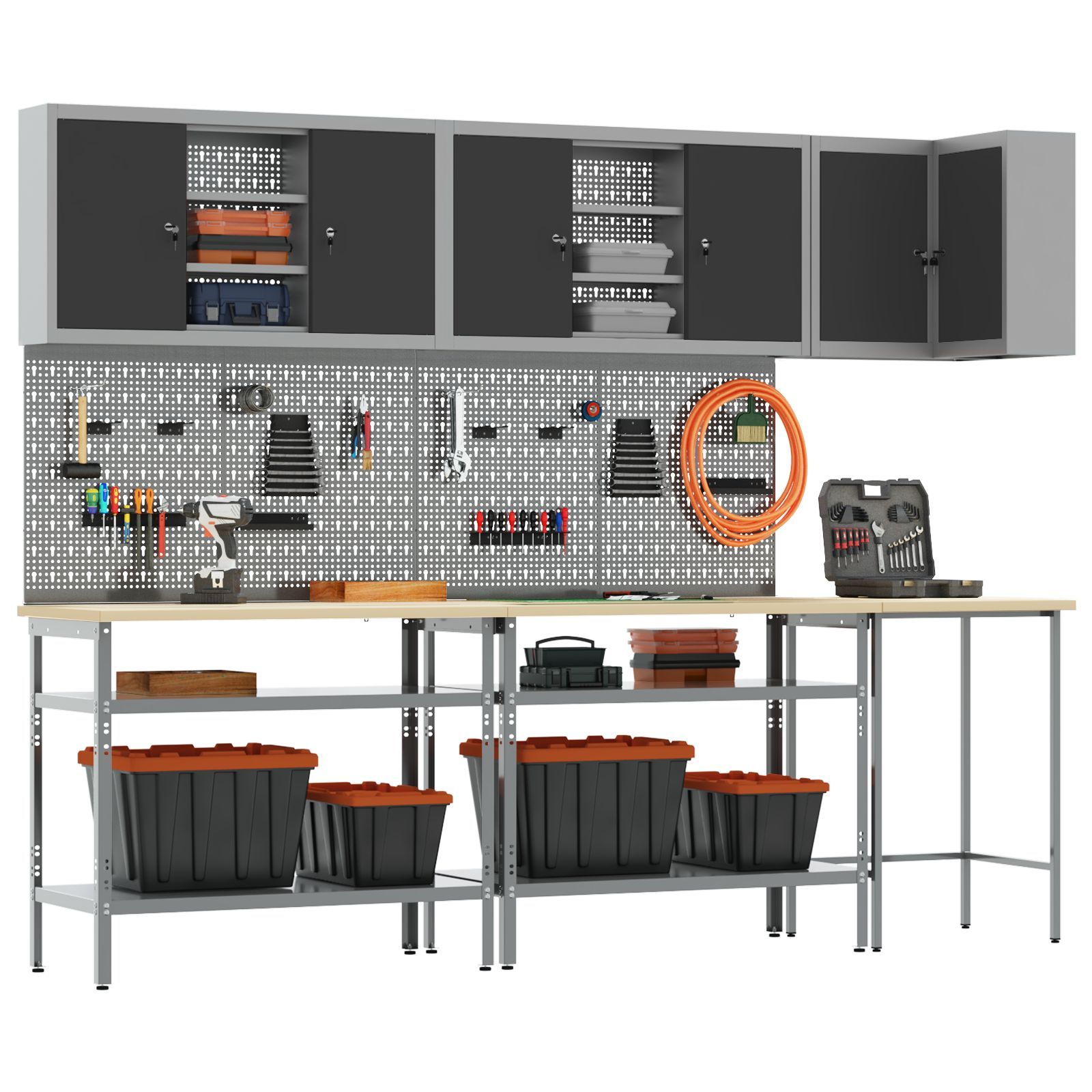 vidaXL vidaXL 10-tlg. Werkzeugbank-Set Schwarz Holzwerkstoff und Metall