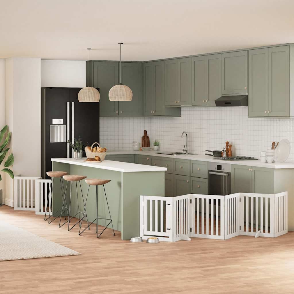 vidaXL vidaXL 12-tlg. Hundetor mit Tür Faltbar Weiß 600 cm Pappelholz