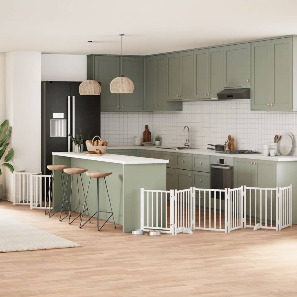 vidaXL vidaXL 12-tlg. Hundetor mit Tür Faltbar Weiß 600 cm Pappelholz
