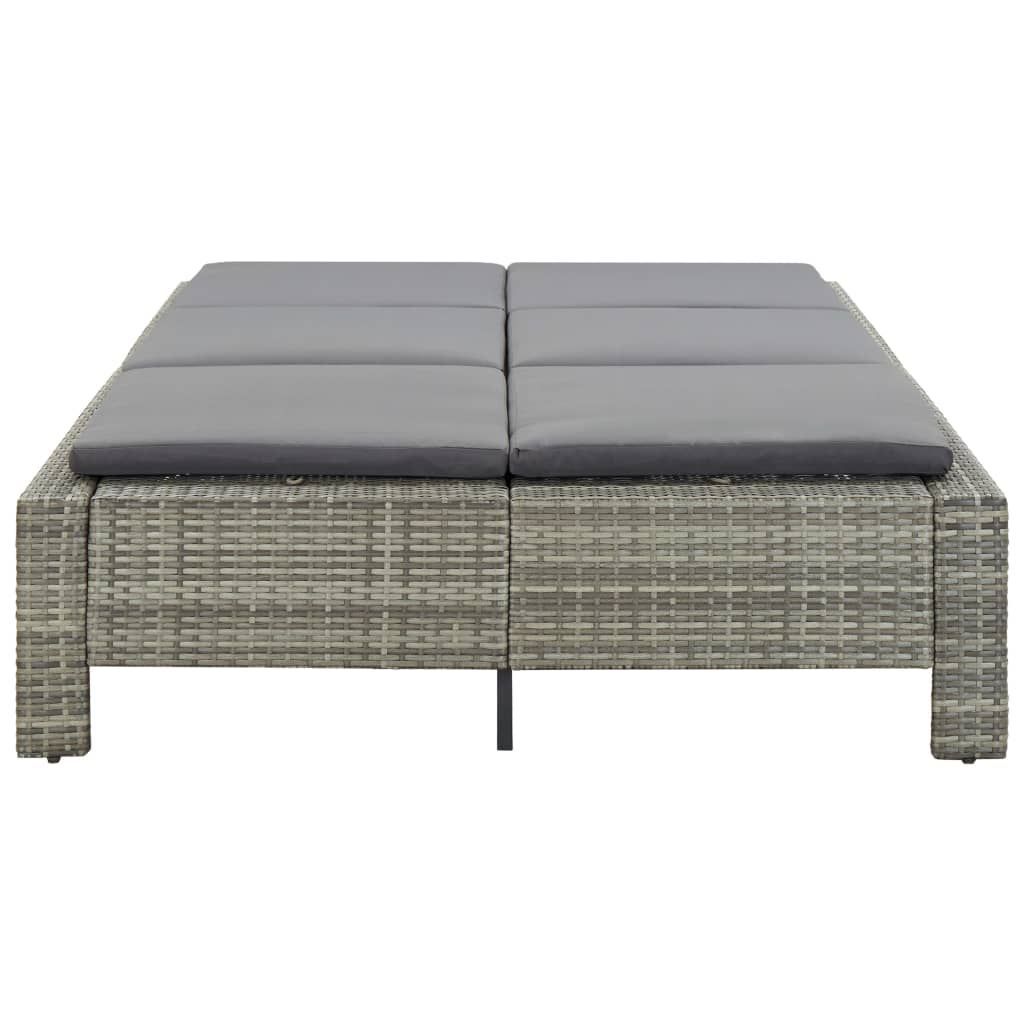 vidaXL vidaXL 2-Personen-Sonnenliege mit Auflage Grau Poly Rattan