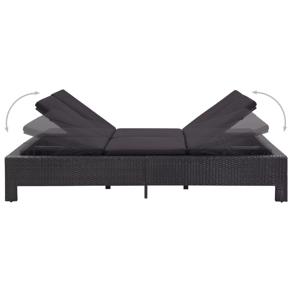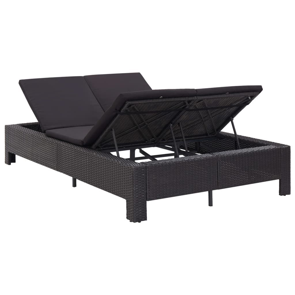 vidaXL vidaXL 2-Personen-Sonnenliege mit Auflage Schwarz Poly Rattan