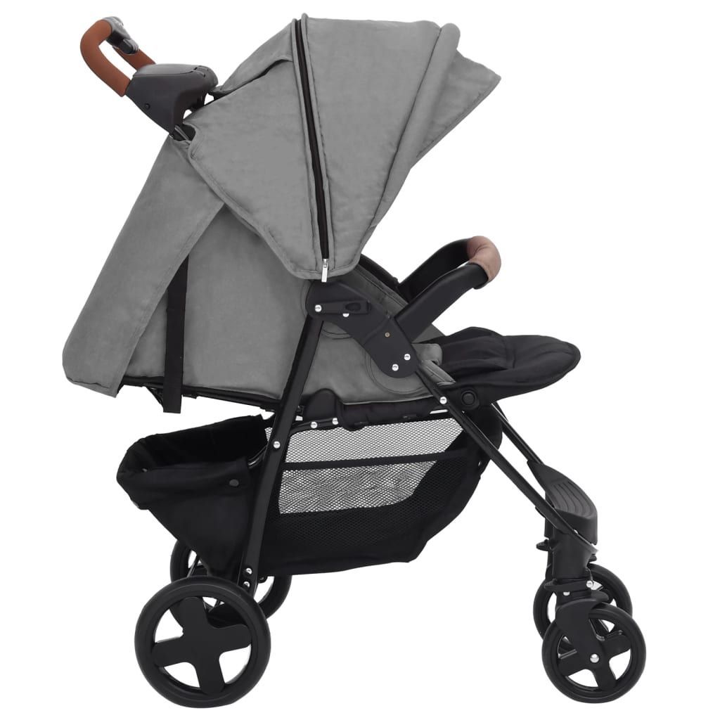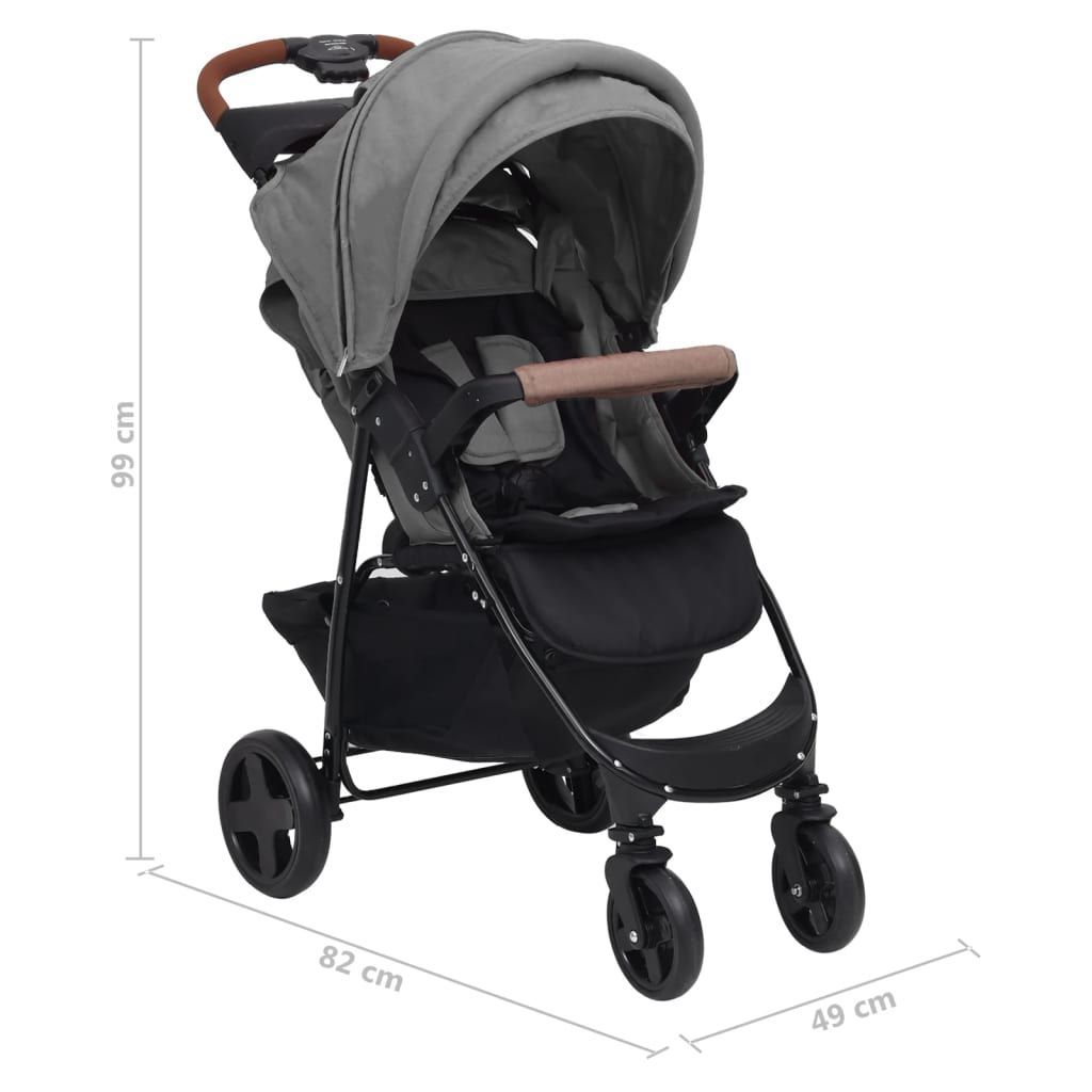 vidaXL vidaXL 3-in-1 Kinderwagen Hellgrau Stahl