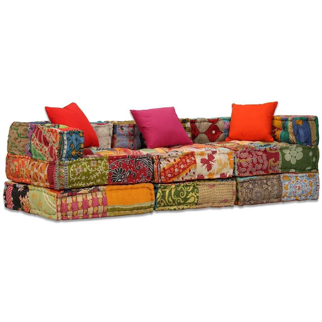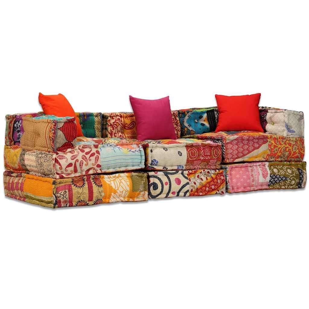 vidaXL vidaXL 3-Sitzer Modularer Pouf Patchwork Stoff