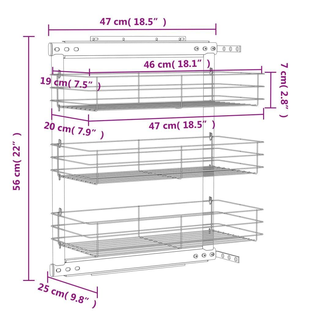 vidaXL vidaXL 3-stufiger Küchen-Drahtkorb Ausziehbar Silbern 47x25x56 cm