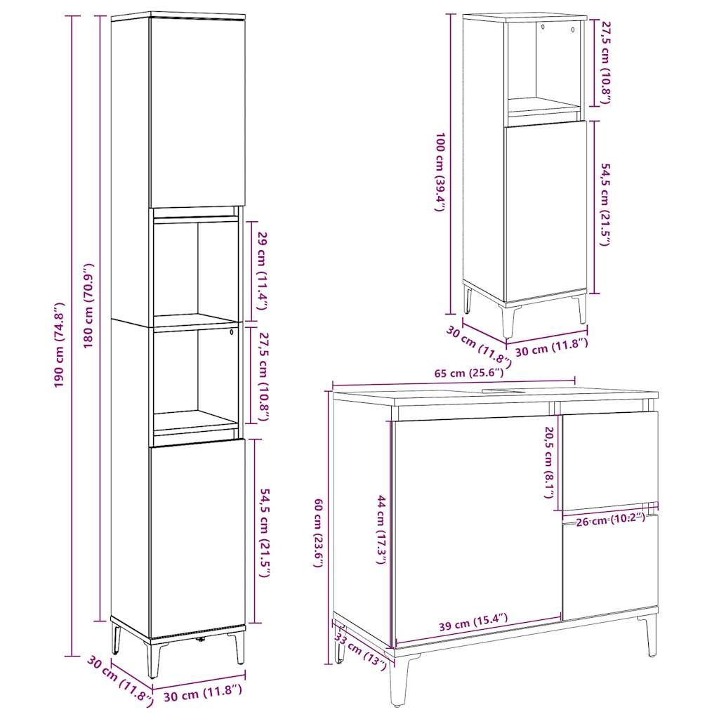 vidaXL vidaXL 3-tlg. Badmöbel-Set Betongrau Holzwerkstoff