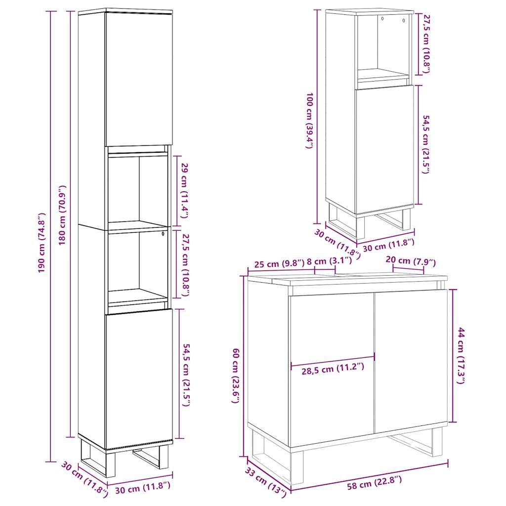 vidaXL vidaXL 3-tlg. Badmöbel-Set Betongrau Holzwerkstoff