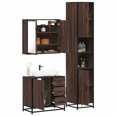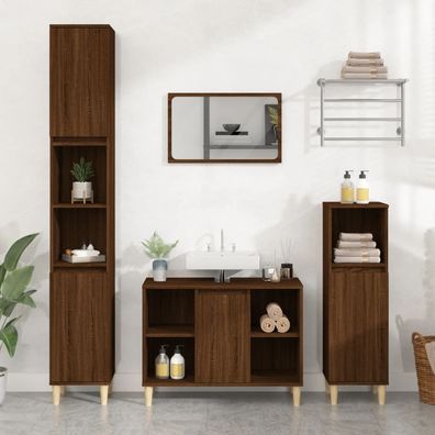vidaXL 3-tlg. Badmöbel-Set Braun Eichen-Optik Holzwerkstoff