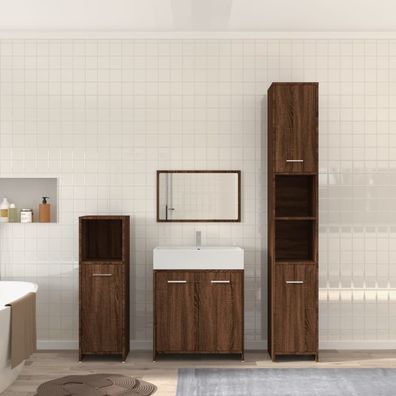 • vidaXL 3-tlg. Badmöbel-Set Braun Eiche Holzwerkstoff