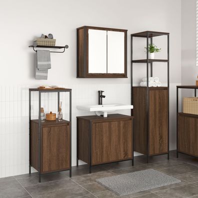 • vidaXL 4-tlg. Badmöbel-Set Braun Eichen-Optik Holzwerkstoff