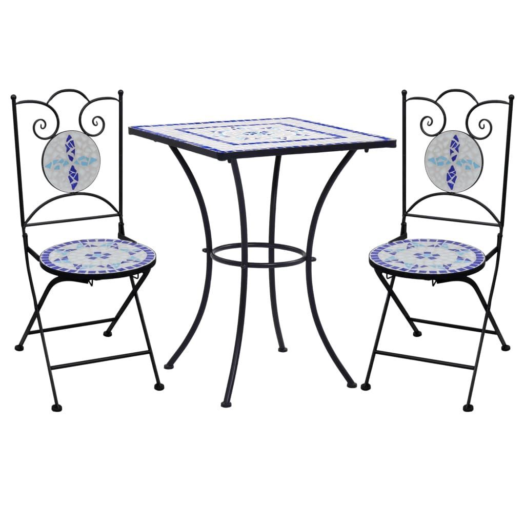 vidaXL vidaXL 3-tlg. Bistro-Set Mosaik Keramik Blau und Weiß