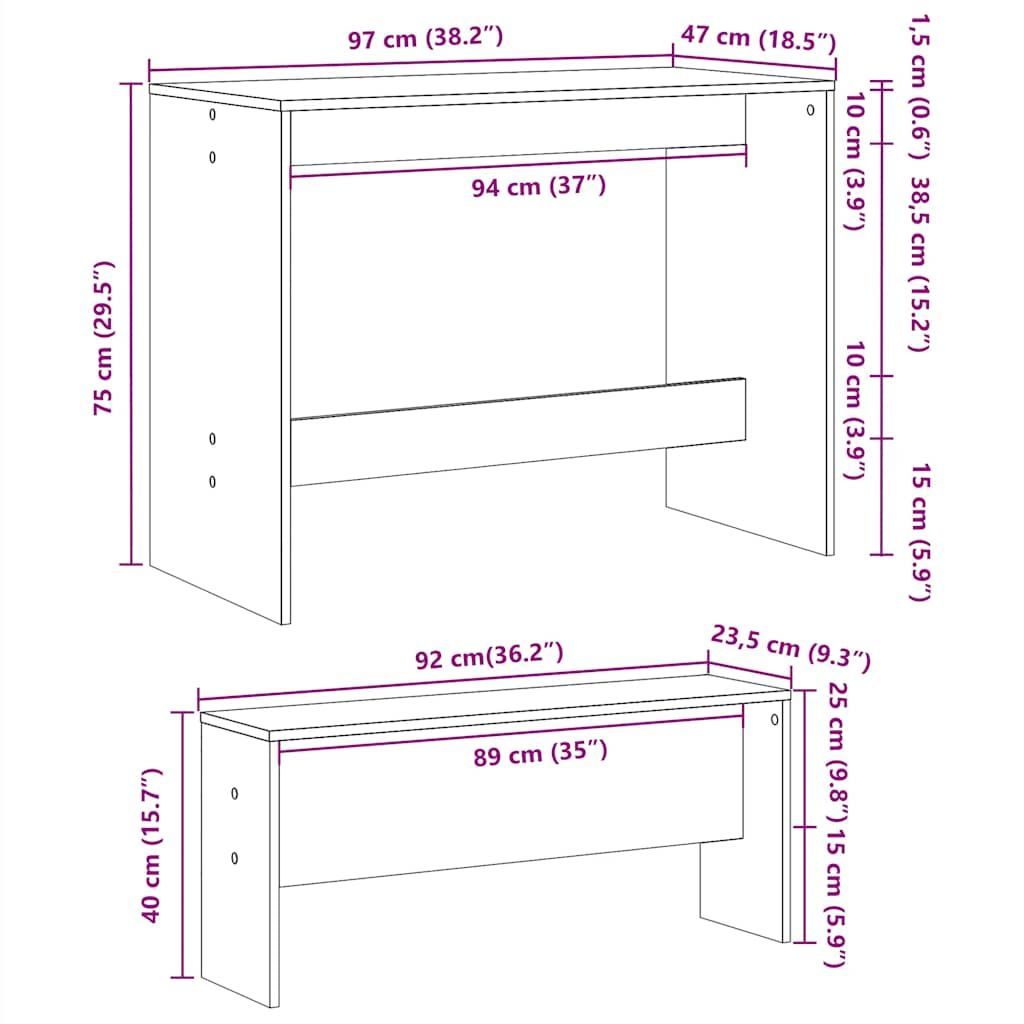 vidaXL vidaXL 3-tlg. Esstisch und Bank Set Braun Eichen-Optik Holzwerkstoff