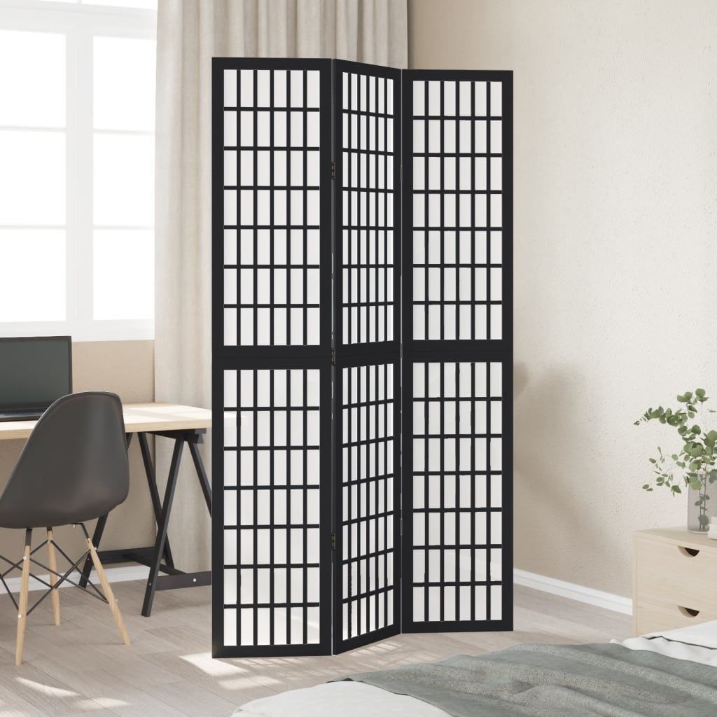 vidaXL vidaXL 3-tlg. Paravent Schwarz Massivholz Paulownia