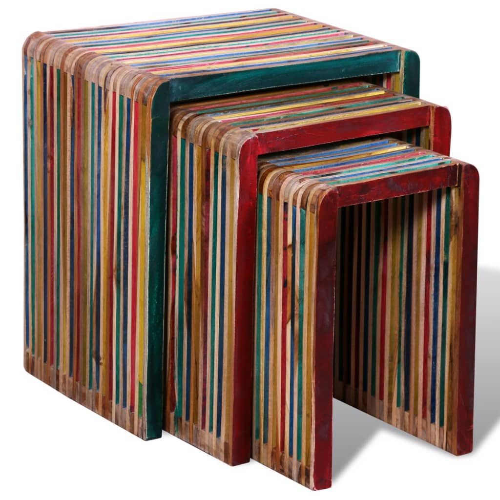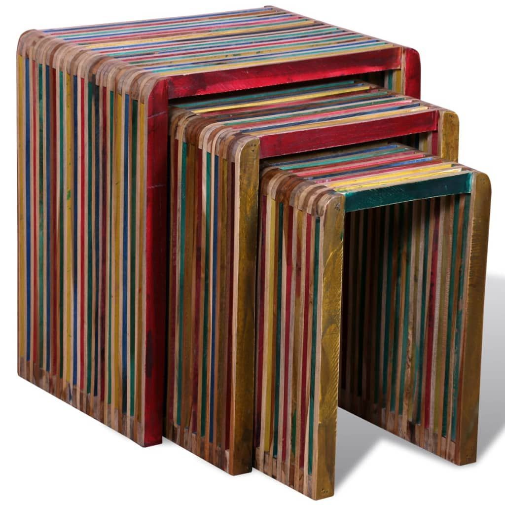 vidaXL vidaXL 3-tlg. Satztisch-Set Mehrfarbig Altholz Teak