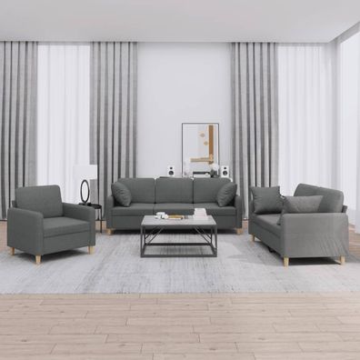 • vidaXL Dreiteilige Sofagarnitur Stoff Dunkelgrau
