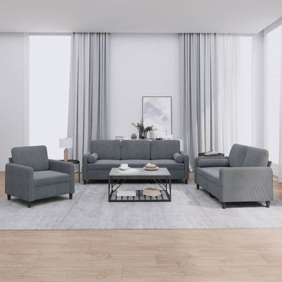 • vidaXL 3-tlg. Sofagarnitur mit Kissen Dunkelgrau Samt