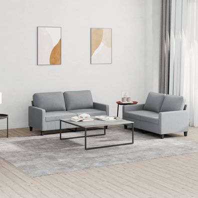 vidaXL 2-tlg. Sofagarnitur Stoff Hellgrau