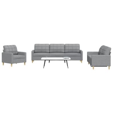 • vidaXL Dreiteilige Sofagarnitur Stoff Hellgrau