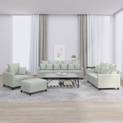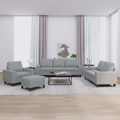 • vidaXL 4-tlg. Sofagarnitur mit Fußhocker Hellgrau Stoff