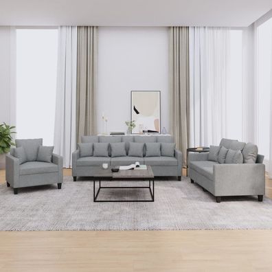 vidaXL 3-tlg. Sofagarnitur mit Kissen Hellgrau Stoff