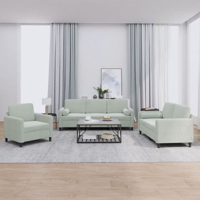 • vidaXL 3-tlg. Sofagarnitur mit Kissen Hellgrau Samt