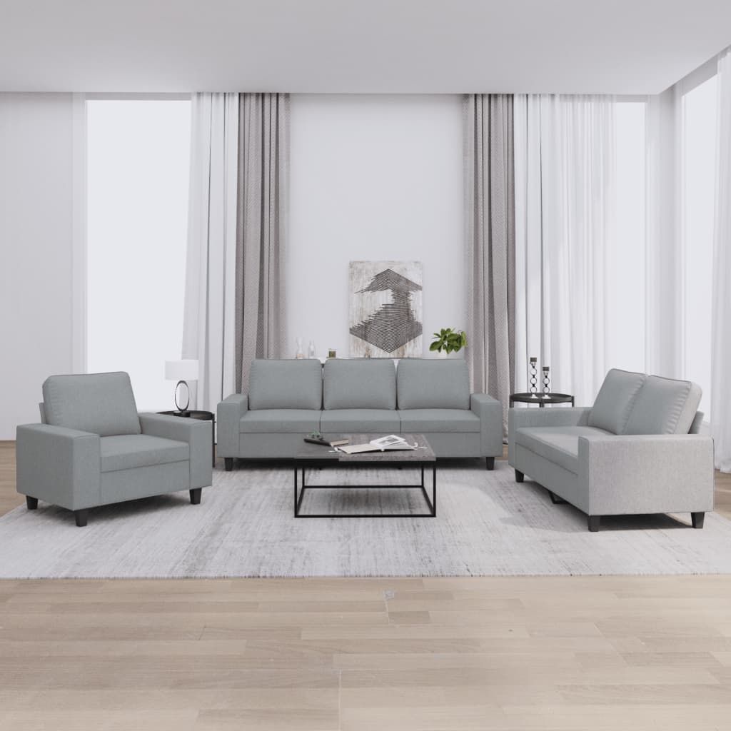 • vidaXL Dreiteilige Sofagarnitur Stoff Hellgrau