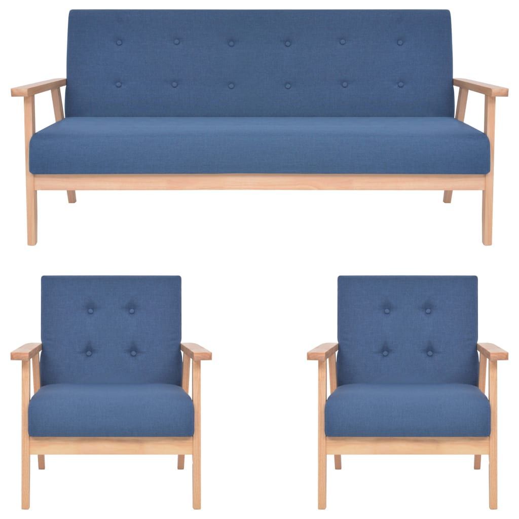 vidaXL vidaXL 3-tlg. Sofagarnitur Stoff Blau