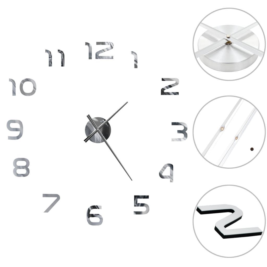 vidaXL vidaXL 3D-Wanduhr Modernes Design 100 cm XXL Silbern