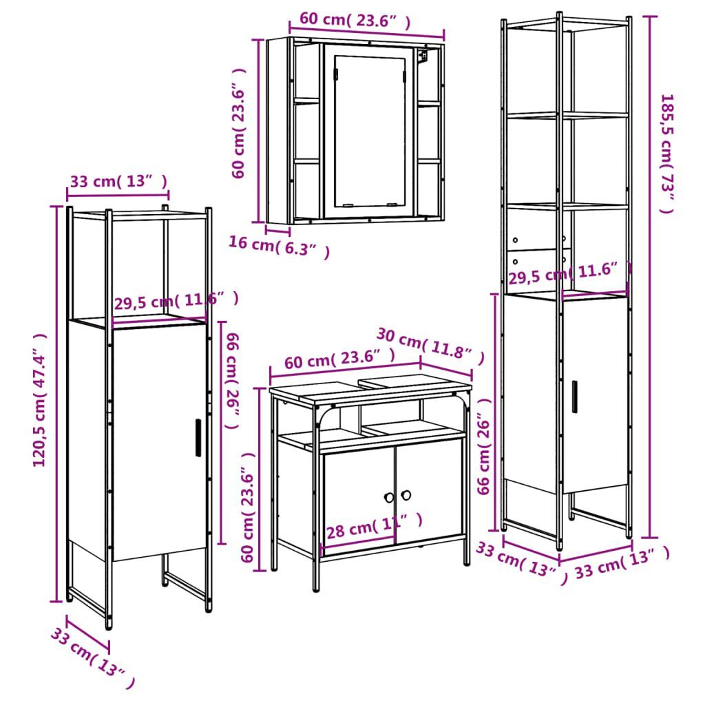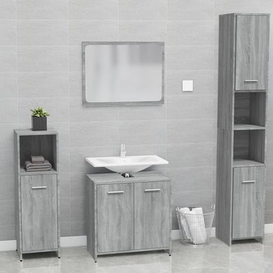 vidaXL vidaXL 4-tlg. Badmöbel-Set Grau Sonoma Holzwerkstoff