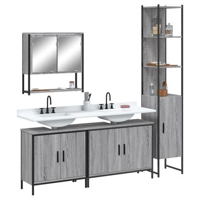 • vidaXL 4-tlg. Badmöbel-Set Grau Sonoma Holzwerkstoff