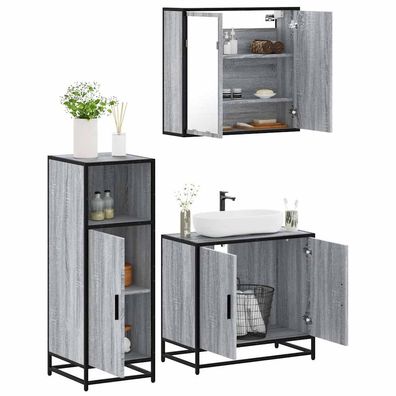 vidaXL 3-tlg. Badmöbel-Set Grau Sonoma Holzwerkstoff