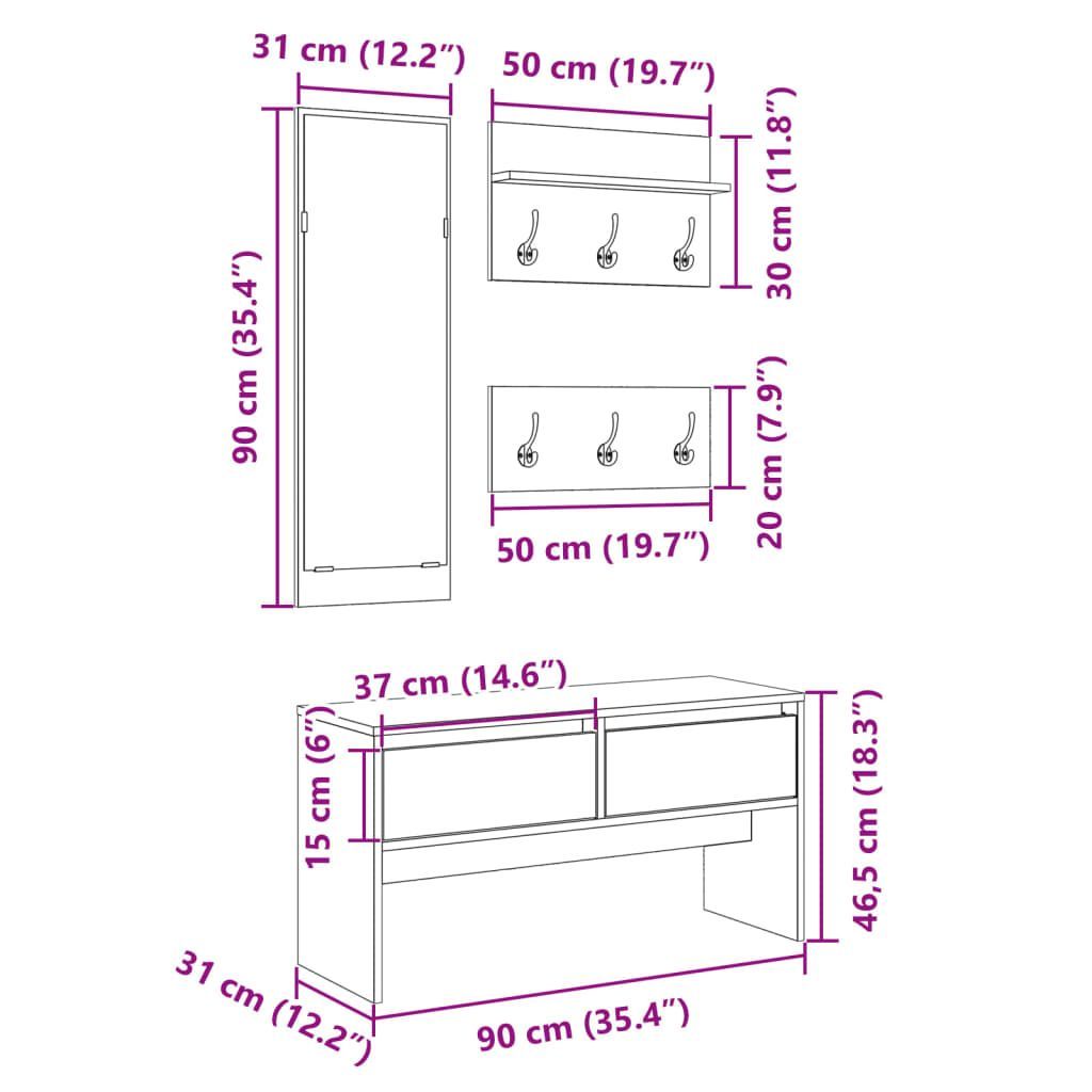 vidaXL vidaXL 4-tlg. Garderoben-Set Schwarz Holzwerkstoff