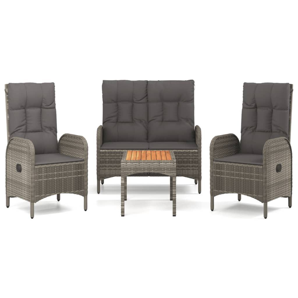 vidaXL vidaXL 4-tlg. Garten-Essgruppe mit Kissen Grau Poly Rattan