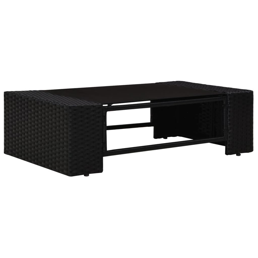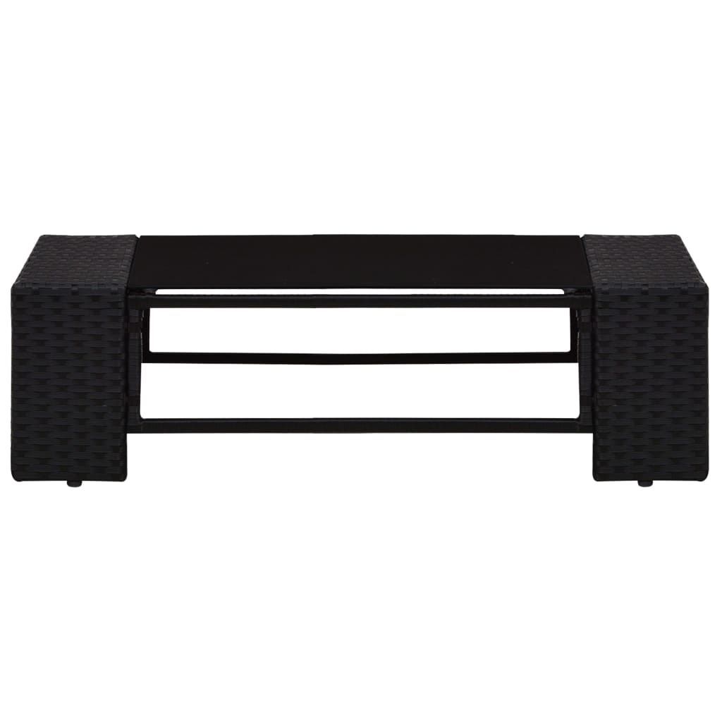 Farbe: Schwarz Material: PE-Rattan, Stoff (100% Polyester), pulverbeschichteter Stahl, gehärtetes Glas Sofa Mittelstück : Abmessungen: 58,5 x 65,5 x 52 cm (B x T x H) Sitzbreite: 58,5 cm Sitztiefe: 60,5 cm Sitzhöhe: 26 cm Rückenkissenmaße: 58,5 x 30 x 8 cm (L x B x T) Sitzpolstergröße: 58,5 x 60 x 8 cm (L x B x T) Ecksofa : Abmessungen: 78,5 x 65,5 x 52 cm (B x T x H) Sitzbreite: 58,5 cm Sitztiefe: 60,5 cm Sitzhöhe: 26 cm Armlehnenbreite: 20 cm Armlehnenhöhe: 33 cm Rückenkissenmaße: 58,5 x 30 x