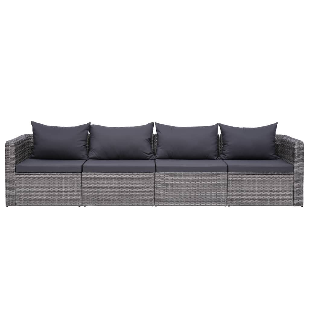 vidaXL vidaXL 4-tlg. Garten-Sofagarnitur mit Kissen Grau Poly Rattan