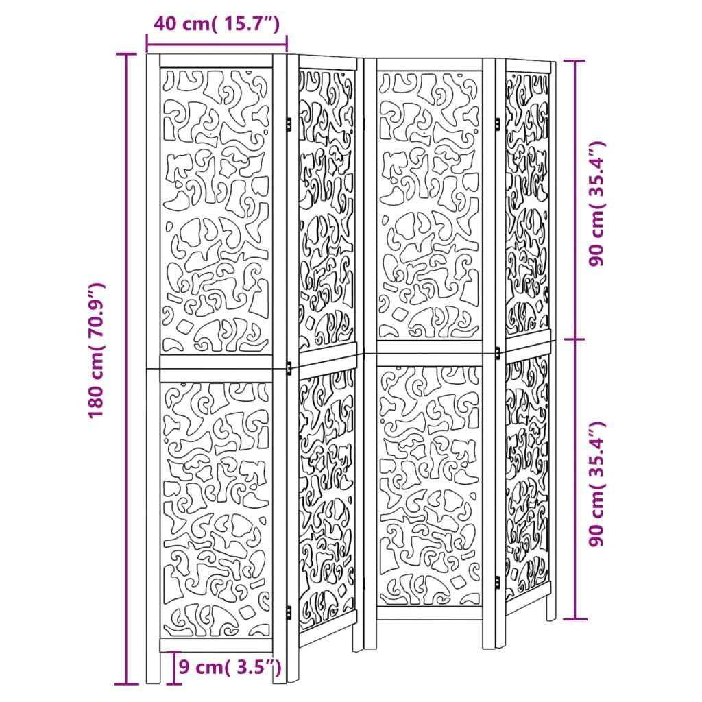 vidaXL vidaXL 4-tlg. Paravent Schwarz Massivholz Paulownia