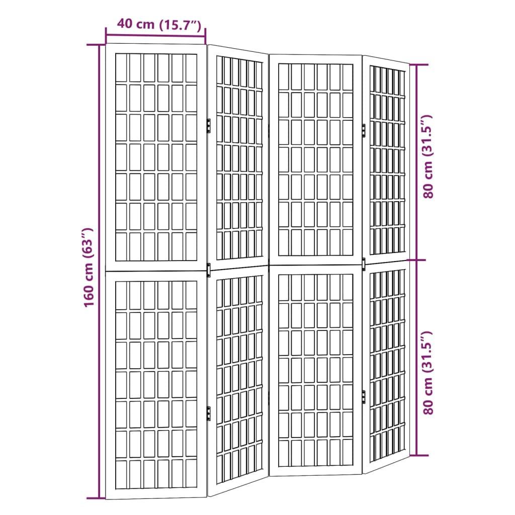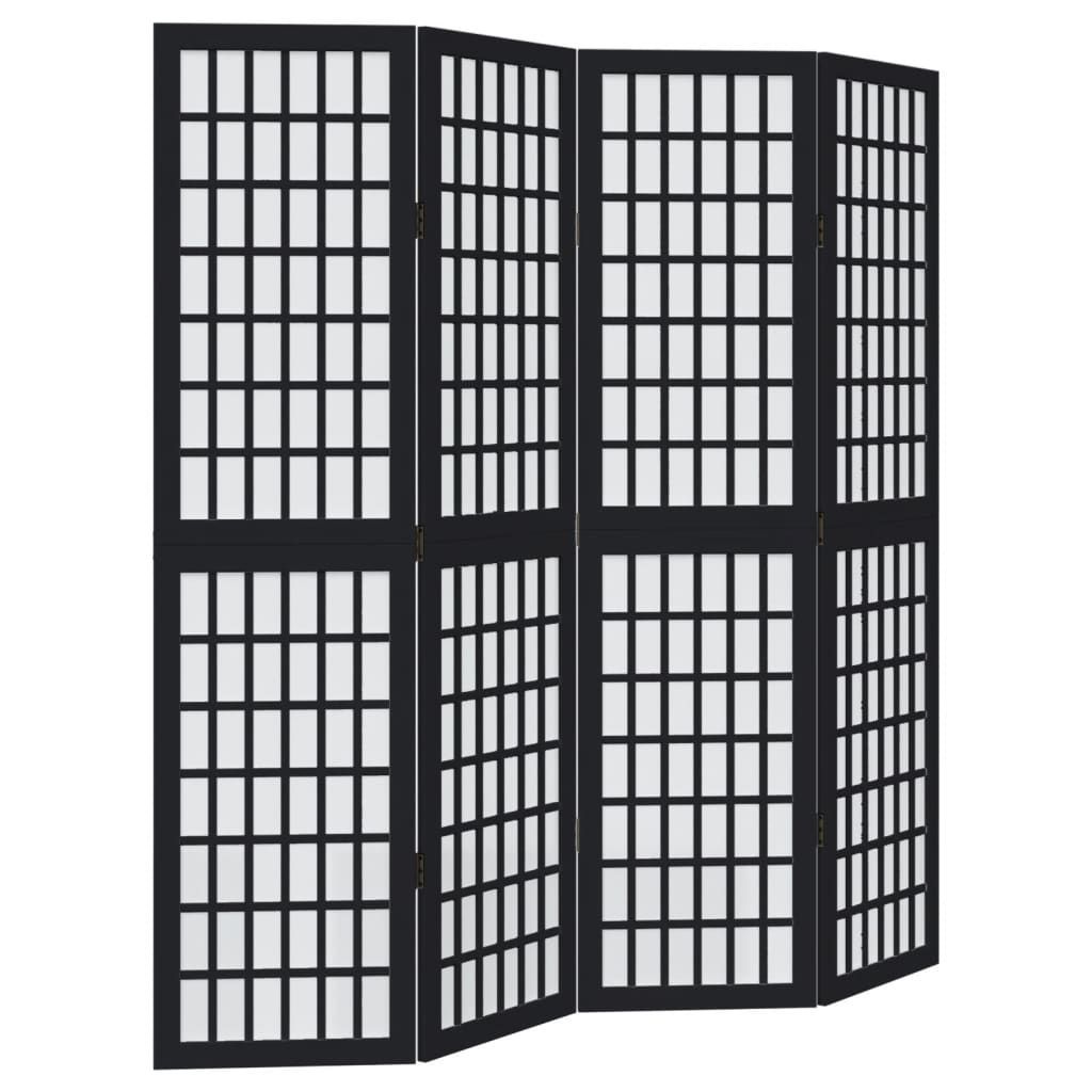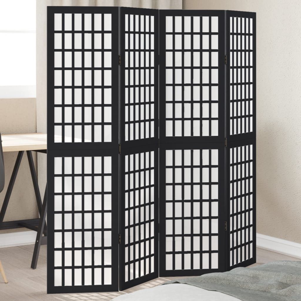 vidaXL vidaXL 4-tlg. Paravent Schwarz Massivholz Paulownia