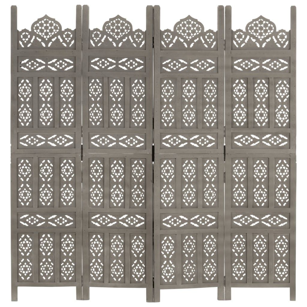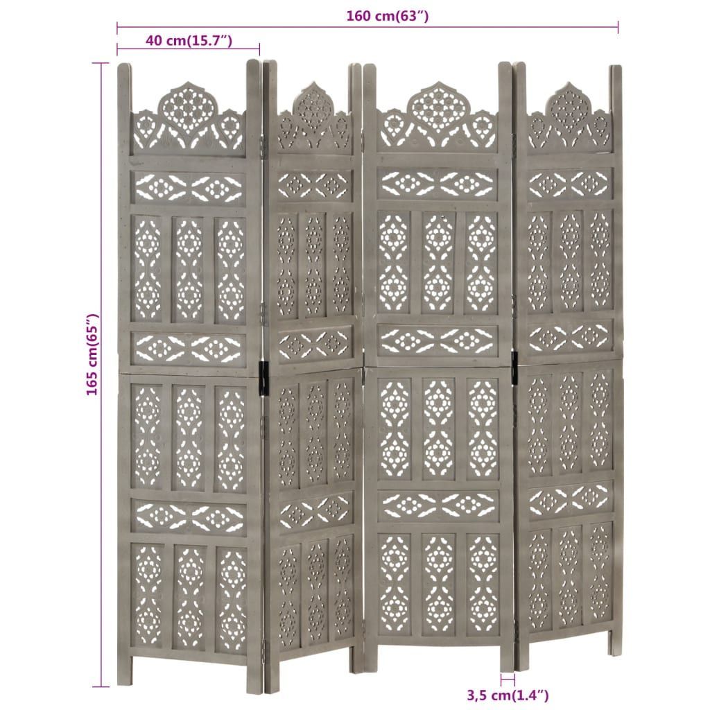 vidaXL vidaXL 4-tlg. Raumteiler Handgeschnitzt Grau 160×165 cm Mangoholz
