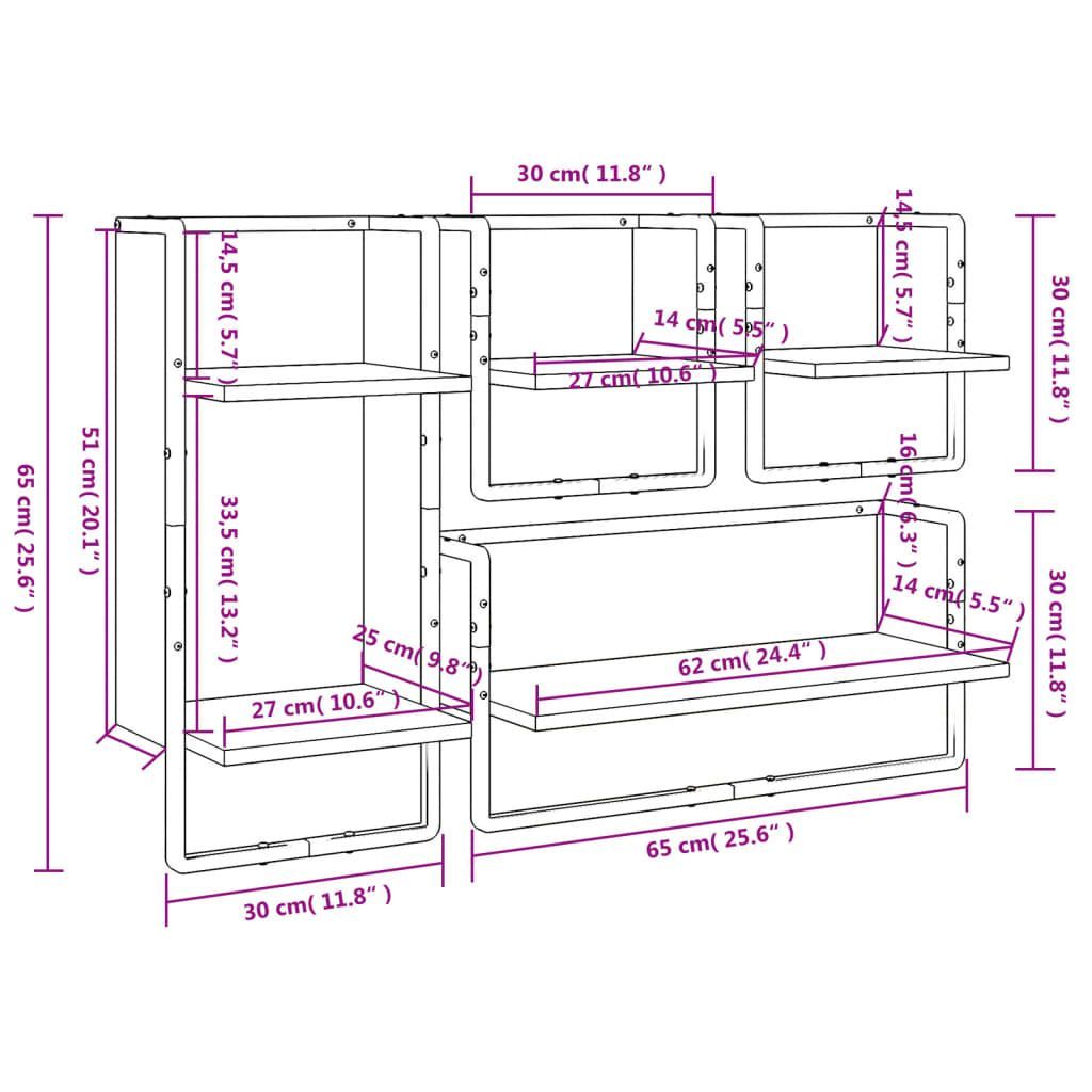 • vidaXL Wandregale mit Stangen 2 Stk. Schwarz 65x25x30 cm