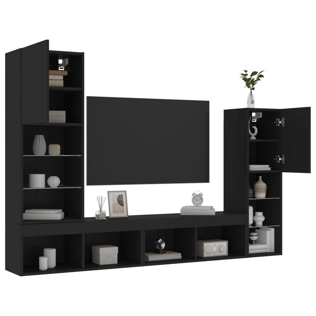 vidaXL vidaXL 4-tlg. Wohnwand mit LED-Beleuchtung Schwarz Holzwerkstoff