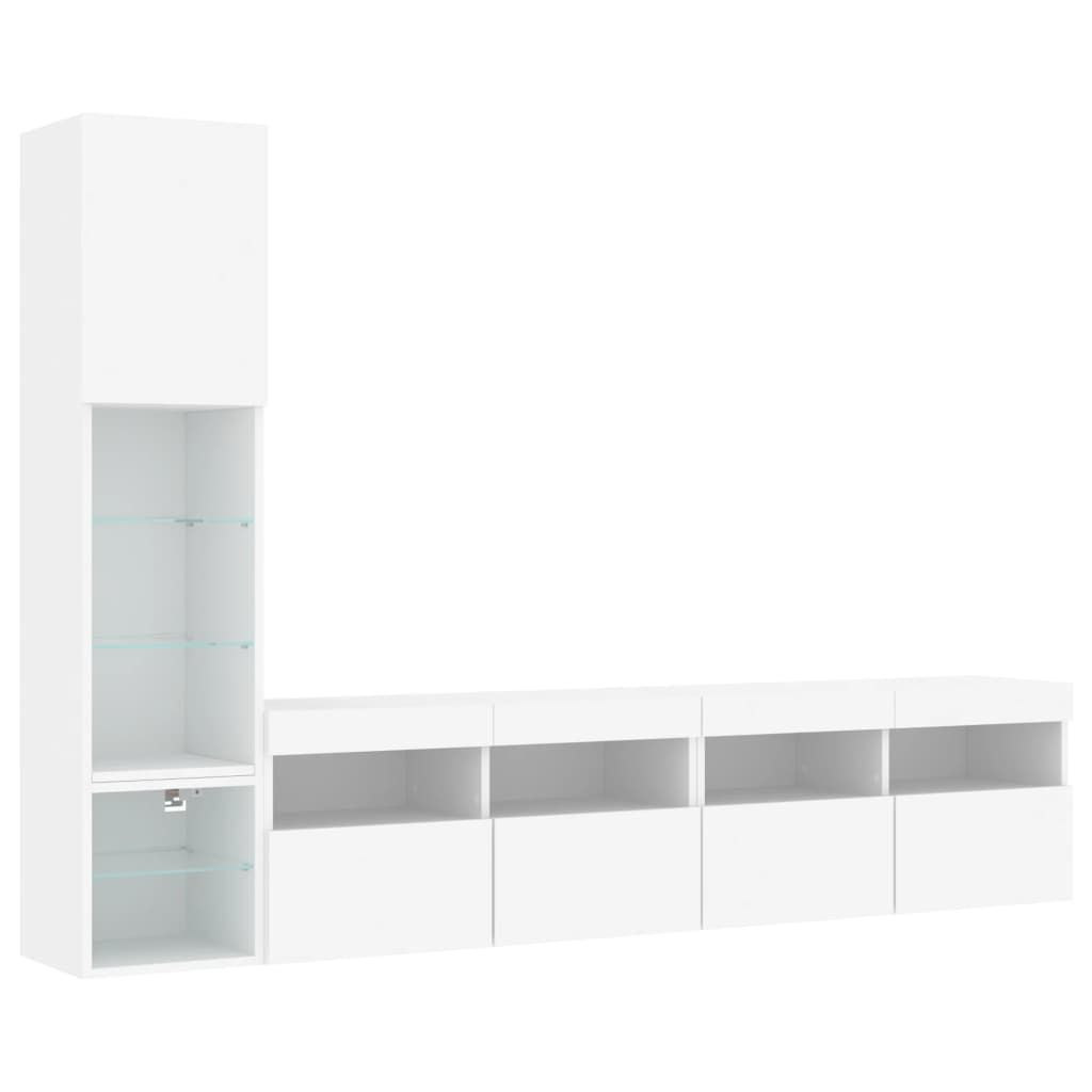vidaXL vidaXL 4-tlg. Wohnwand mit LED-Beleuchtung Weiß Holzwerkstoff