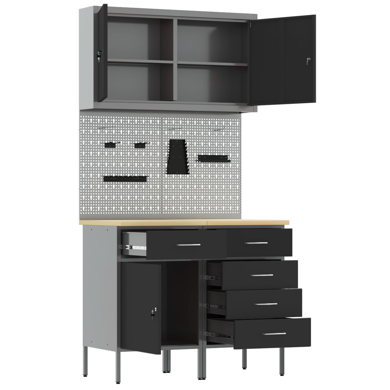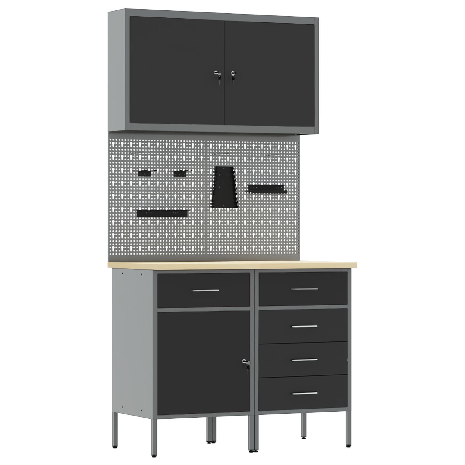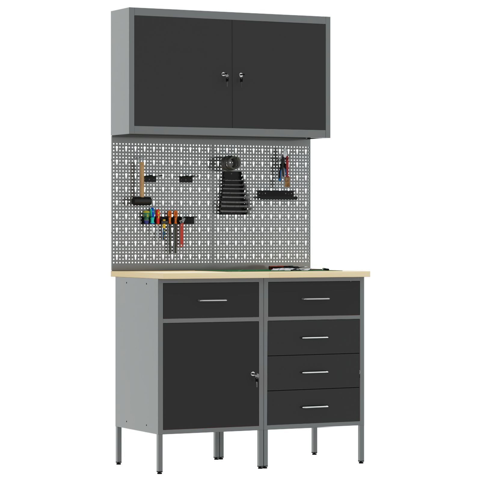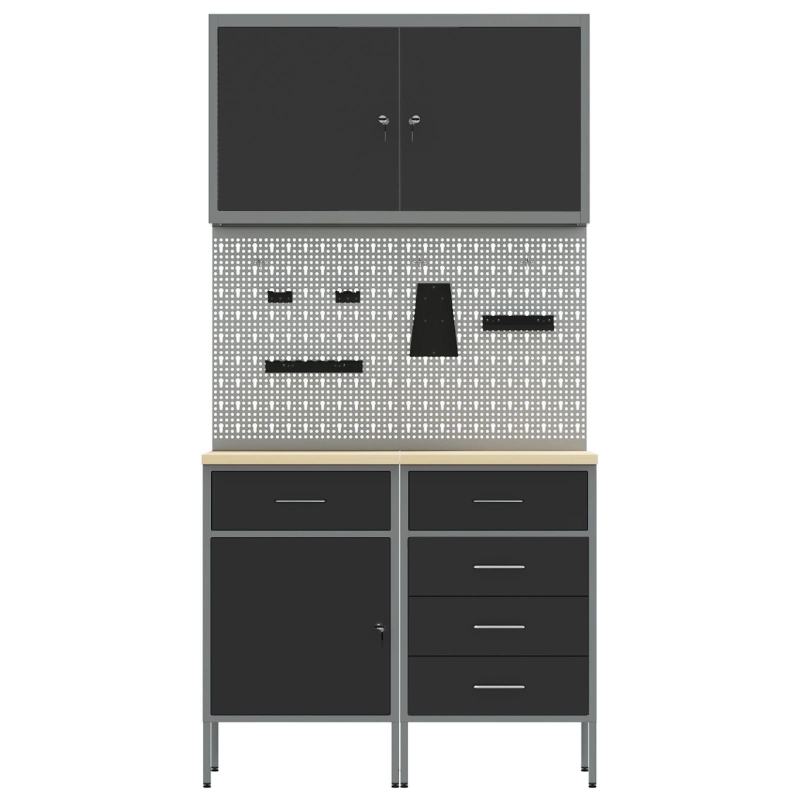 vidaXL vidaXL 5-teiliger Werkbank-Set aus schwarzem Stahl