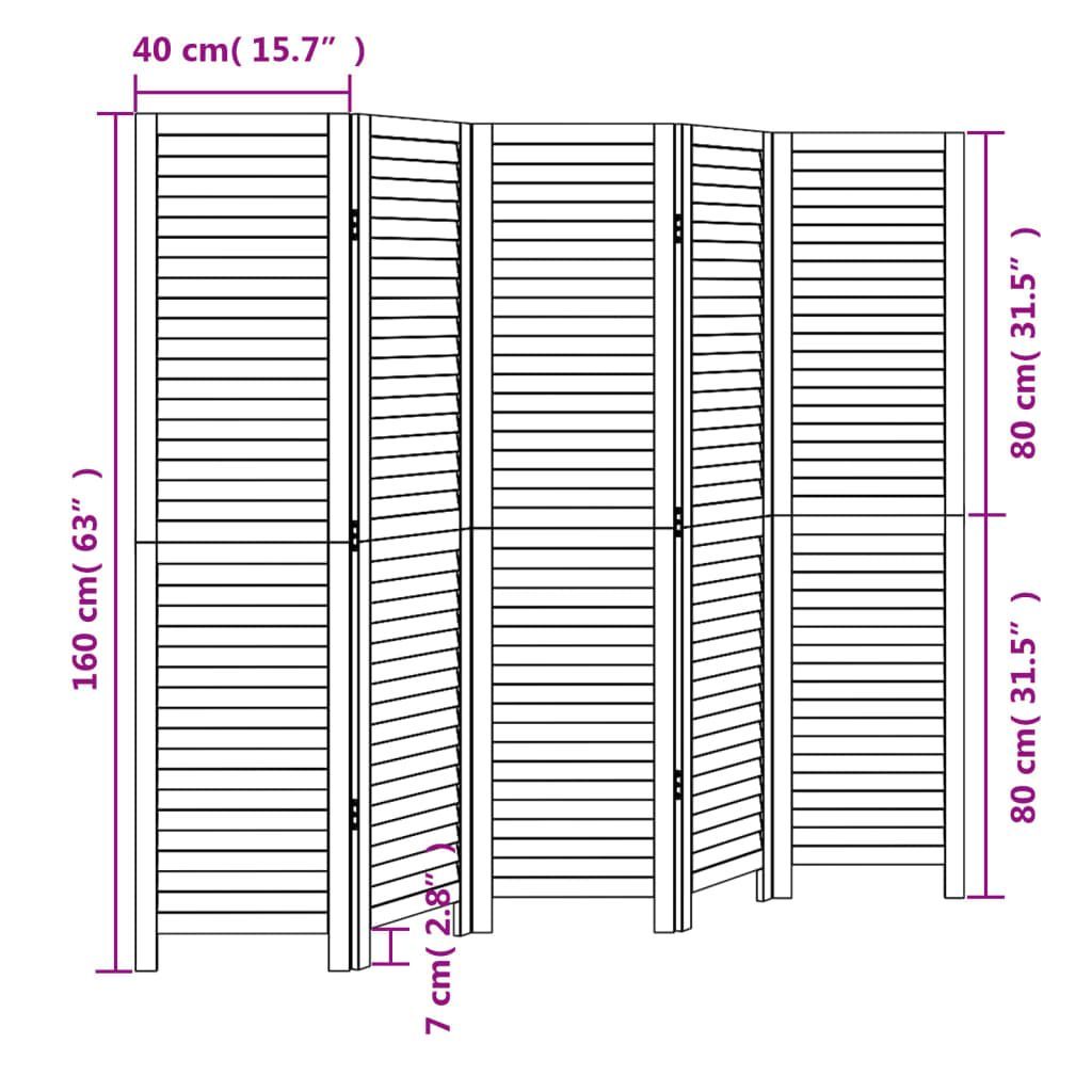 vidaXL vidaXL 5-tlg. Paravent Schwarz Massivholz Paulownia