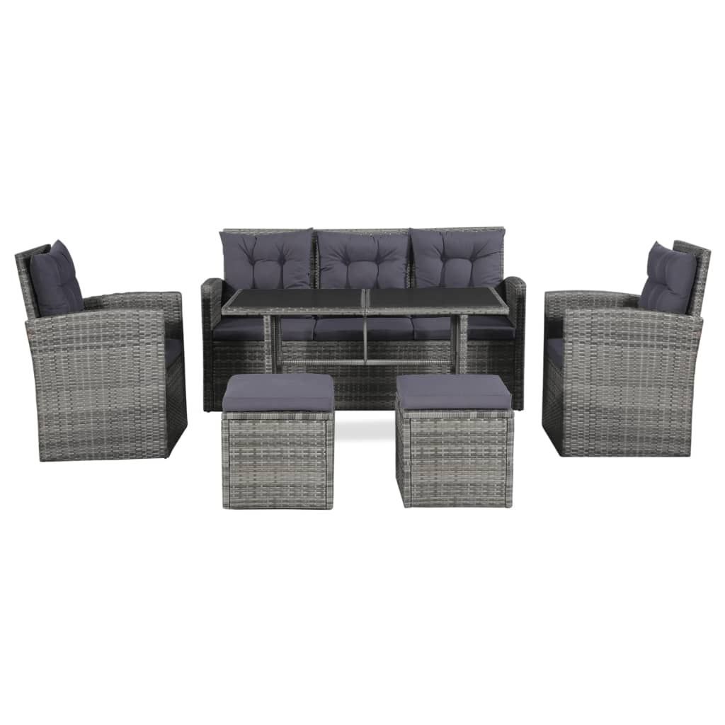 vidaXL vidaXL 6-tlg. Garten-Lounge-Set mit Auflagen Poly Rattan Grau