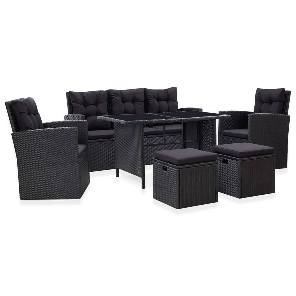 vidaXL vidaXL 6-tlg. Garten-Lounge-Set mit Kissen Poly Rattan Schwarz
