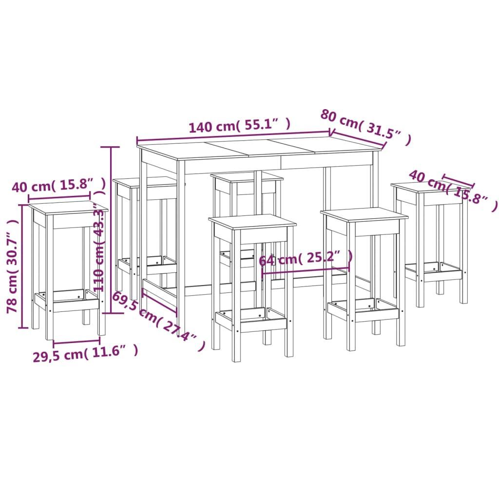 vidaXL vidaXL 7-tlg. Bar-Set Weiß Massivholz Kiefer
