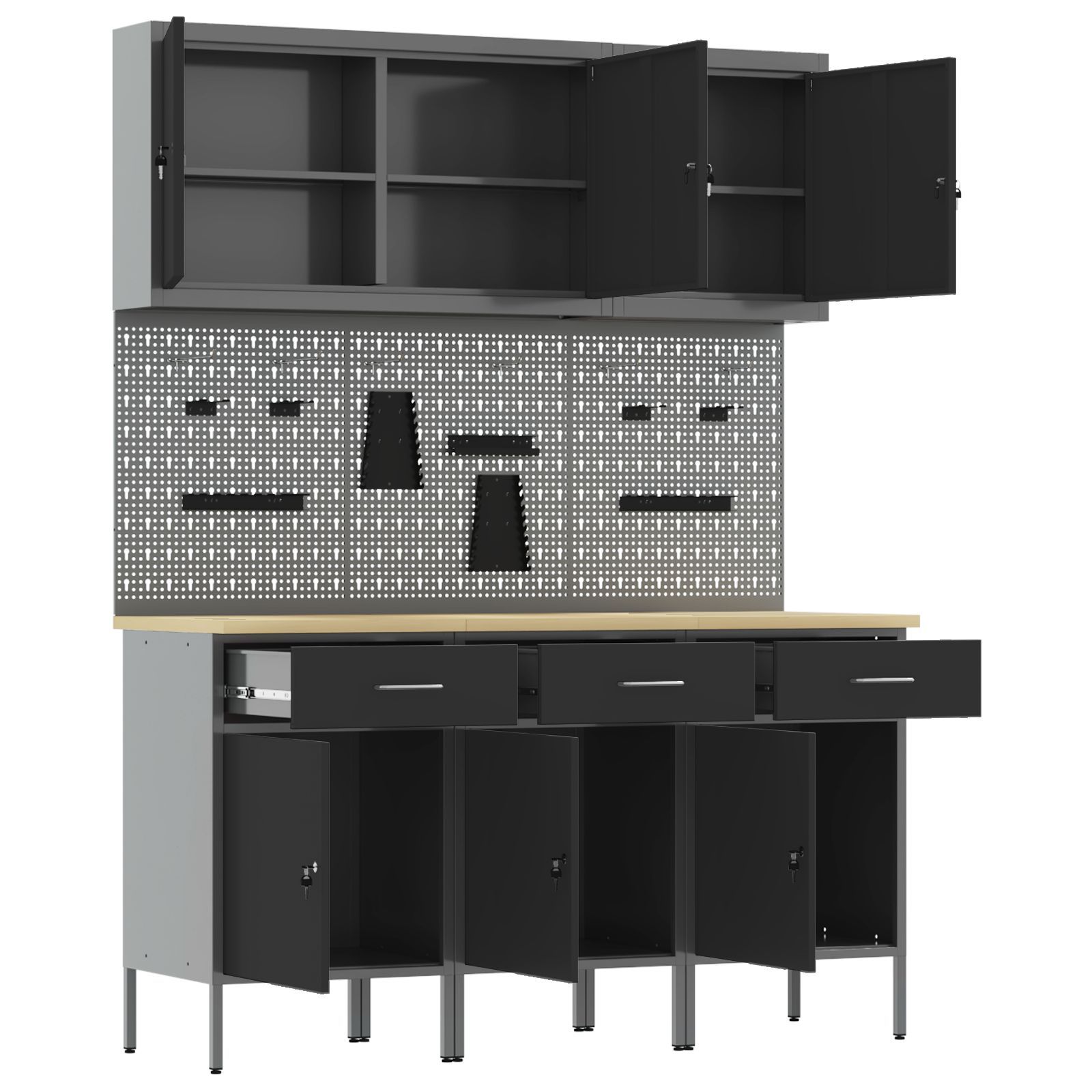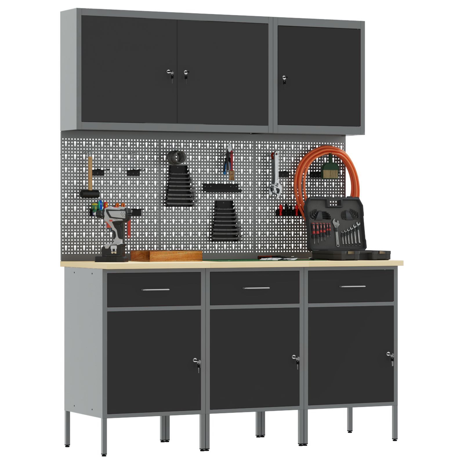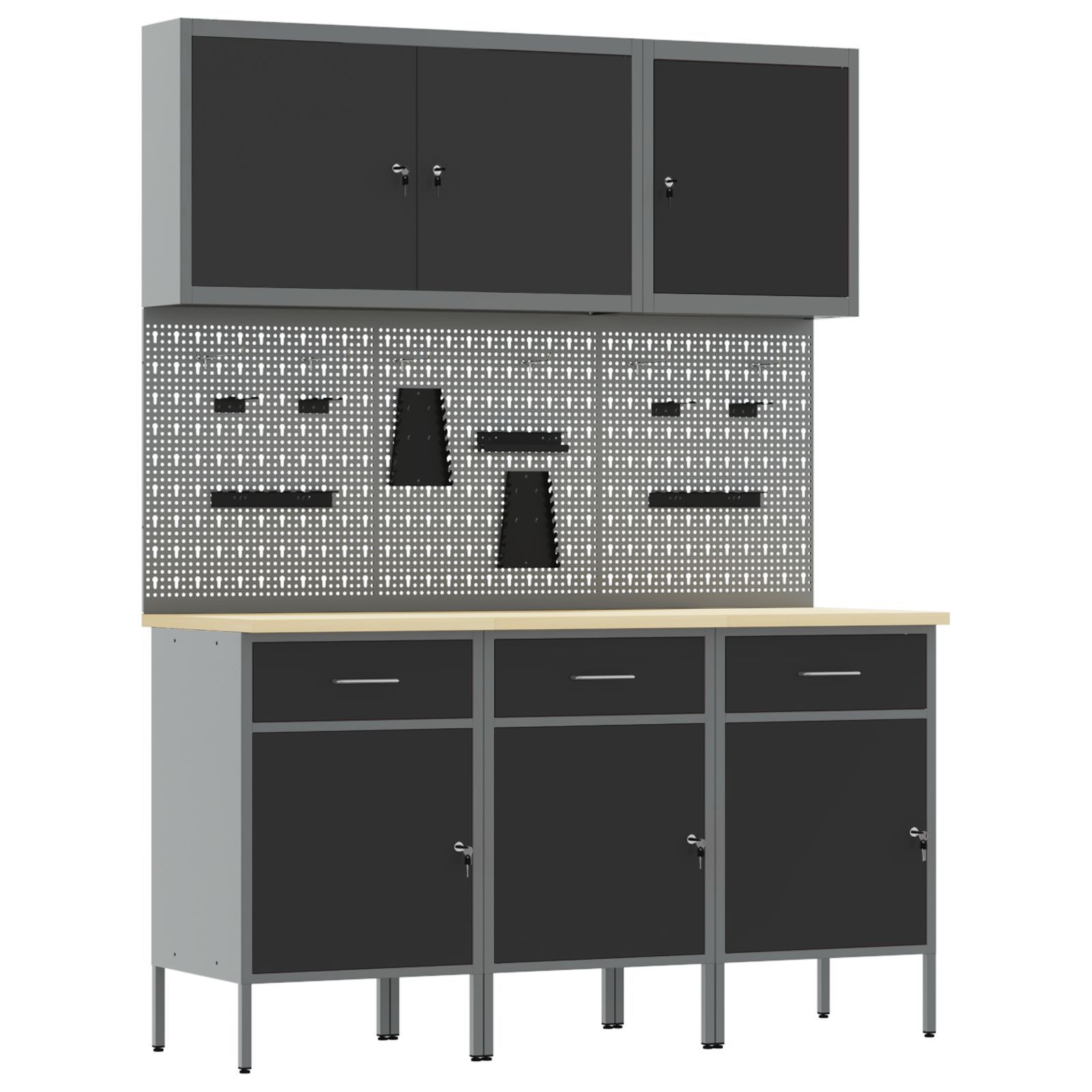 vidaXL vidaXL 8-teiliges Werkbank-Set Schwarz Stahl