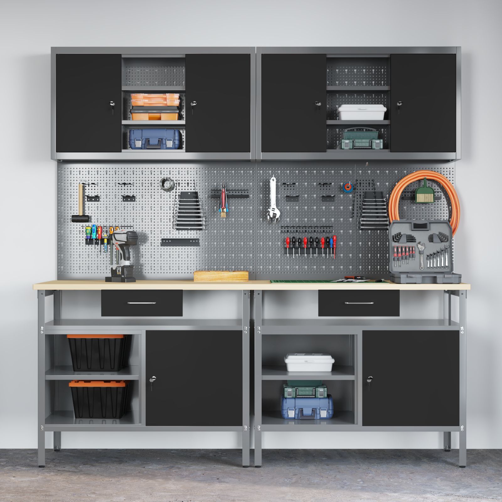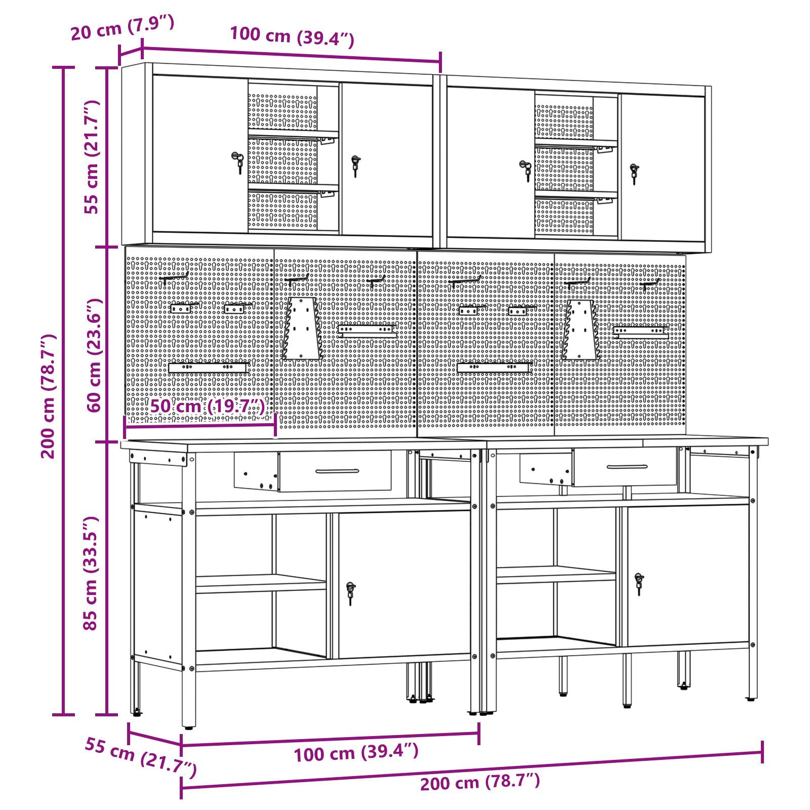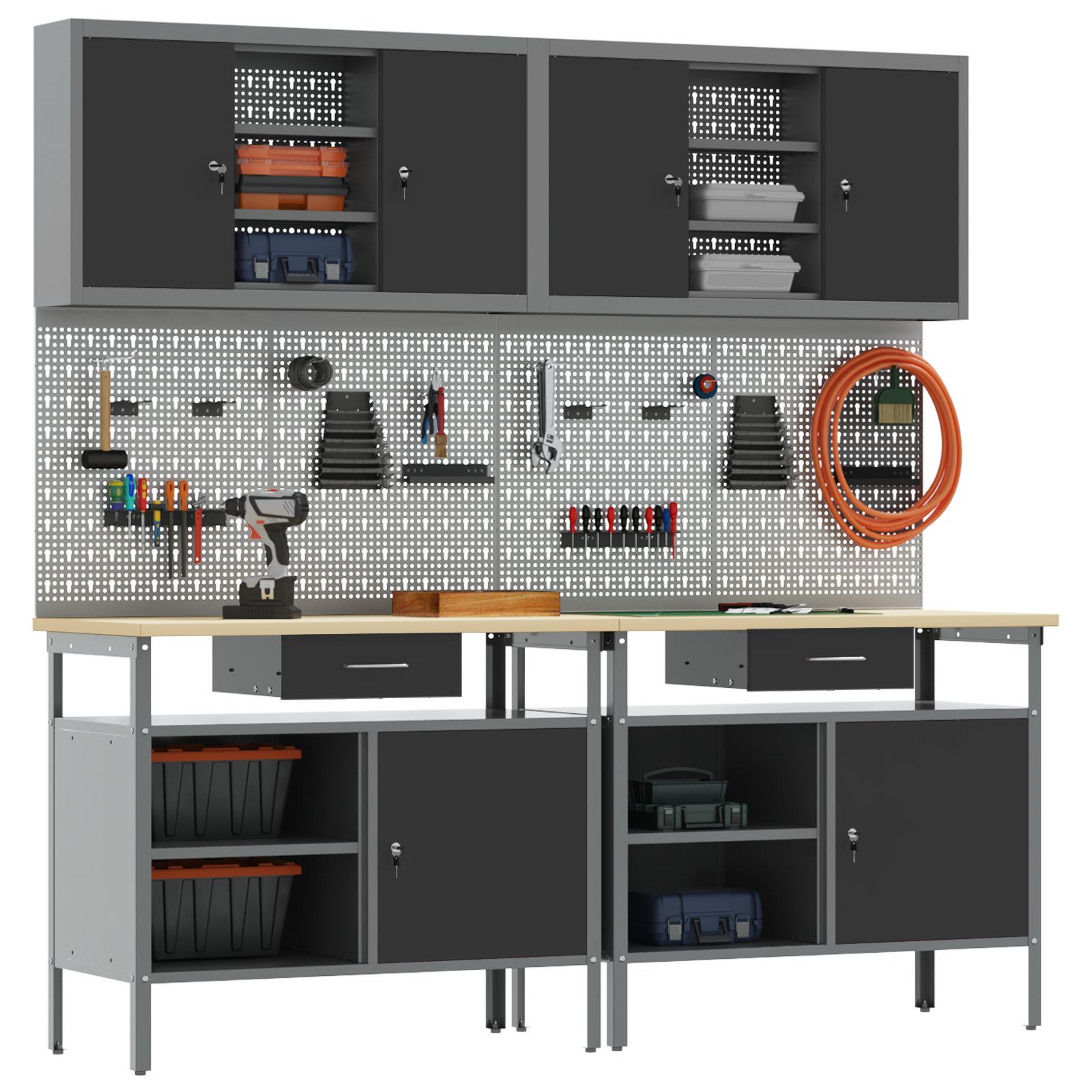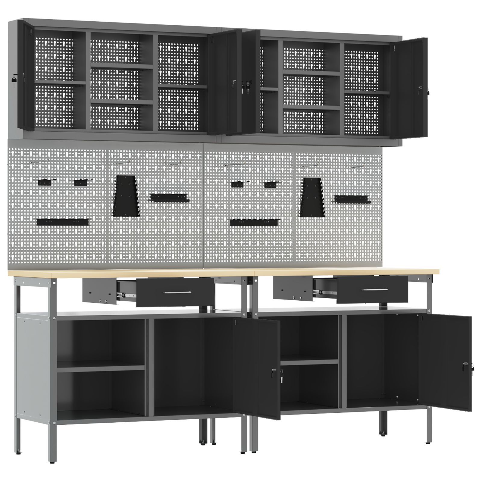 vidaXL vidaXL 8-tlg. Werkbank-Set Schwarz Stahl