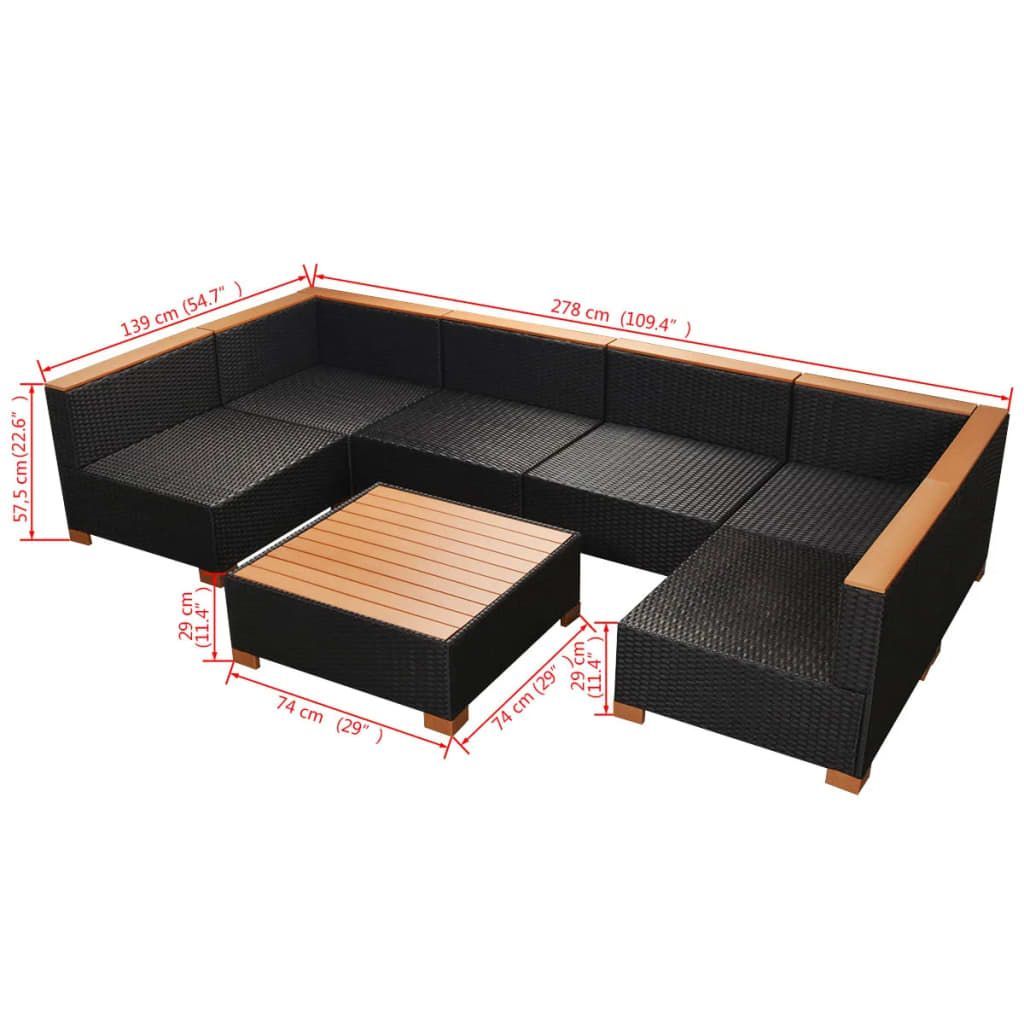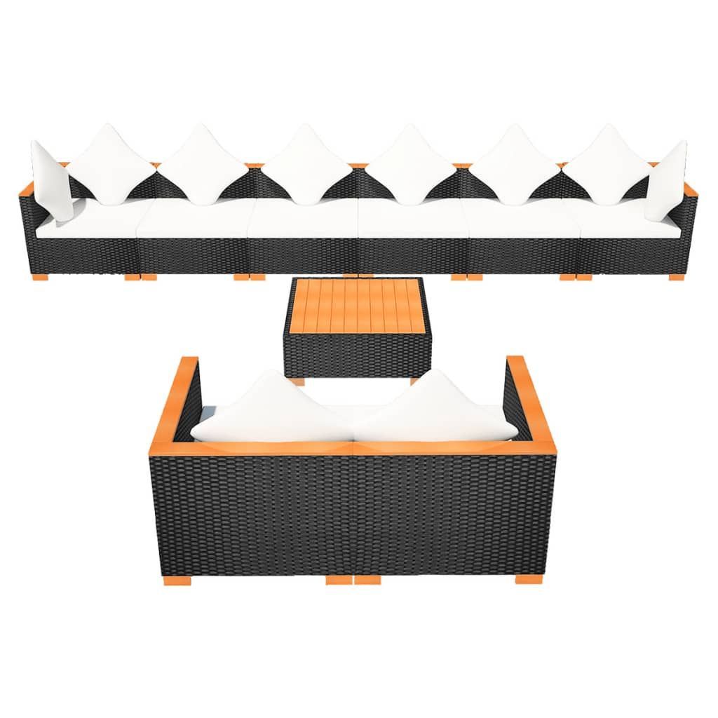 vidaXL vidaXL 9-tlg. Garten-Lounge-Set mit Auflagen Poly Rattan Schwarz